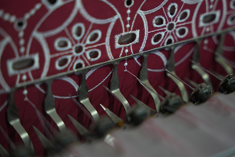 Latest generation Swiss and German embroidery machines capable of creating the most intricate patterns.